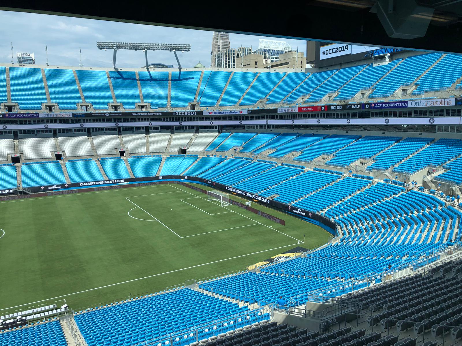 Tutto pronto al Bank of America di Charlotte per l'inizio di Arsenal-Fiorentina. I viola hanno già effettuato l'ingresso in campo prima del match per la classica passeggiata prima del riscaldamento. Tra meno di un'ora ci sarà il fischio di inizio e gli inglesi, finalisti di Europa League, saranno contrapposti alla Fiorentina di Vincenzo Montella. Qui di seguito le foto di FirenzeViola.it dello stadio che ospiterà la gara.