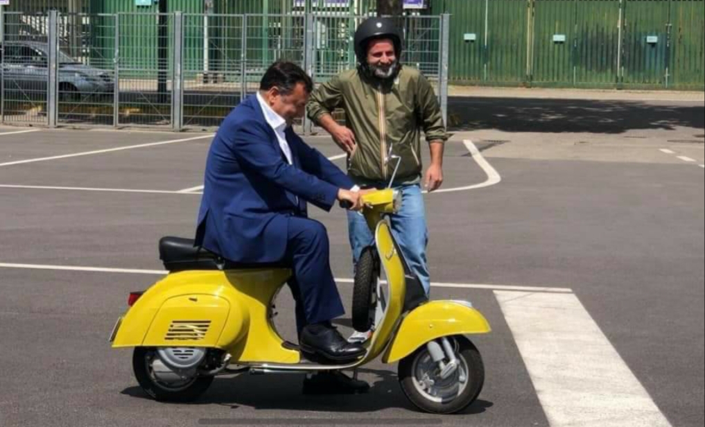 Rocco Commisso ci manca molto anche se abbiamo sentito le sue parole pochi giorni fa. Abbiamo però a Firenze suo figlio Joseph e soprattutto Joe Barone che si è reso protagonista di una simpatica passerella su una Vespa 50 gialla davanti al Centro Sportivo. A parte che è andato in giro senza casco, ma gli perdoniamo tutto visti i pochi metri percorsi, volevamo sapere come si è generato questo simpatico siparietto e abbiamo contatto Alessandro Babbei presidente del Viola Club Accademia di Scandicci.