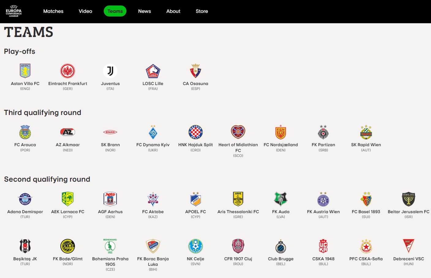 Intanto negli scorsi giorni, sul sito ufficiale del torneo, la UEFA ha stilato l’elenco delle squadre già certe di prendere parte alla competizione, suddividendole nei rispettivi di turni dai quali entreranno in gioco. Le compagini presenti nell’urna degli spareggi, quelle delle principali leghe europee, sono Aston Villa, Eintracht Francoforte e Lille. Di seguito lo schema pubblicato sul sito ufficiale della Conference con tutte le partecipanti (da precisare che nello schema è presente la Juventus, che ancora non sa se prenderà parte o meno al torneo, e l’Osasuna, escluso dalle coppe e che quindi non farà parte della competizione).