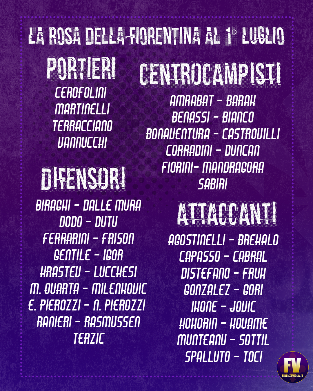 Amrabat - Barak - Benassi - Bianco - Bonaventura - Castrovilli - Corradini - Duncan - Fiorini - Mandragora - Sabiri