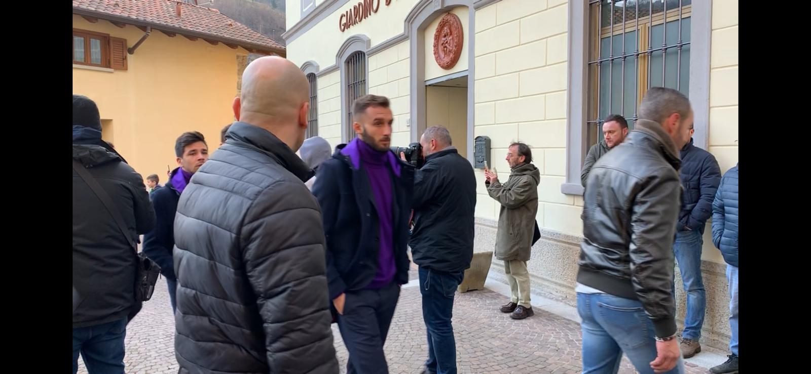 07.49 - Presso la chiesa di San Pellegrino si vede anche una delegazione del Cagliari. Presenti per la società sarda, che alla pari della Fiorentina ha ritirato la maglia numero 13 di Astori, il presidente Giulini, il dirigente Daniele Conti e Cossu.