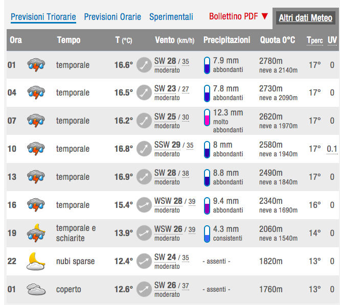 La situazione climatica però dovrebbe iniziare gradualmente a migliorare dopo le 17:00, con la pioggia che dovrebbe pian piano attenuarsi, anche se sono previste in ogni caso forti precipitazioni nel corso di tutta la sfida di oggi tra Fiorentina e Sampdoria. Dalle 20:00 circa, infine, la pioggia dovrebbe cessare. Ecco una tabella riassuntiva del meteo fiorentino previsto per la giornata di oggi: