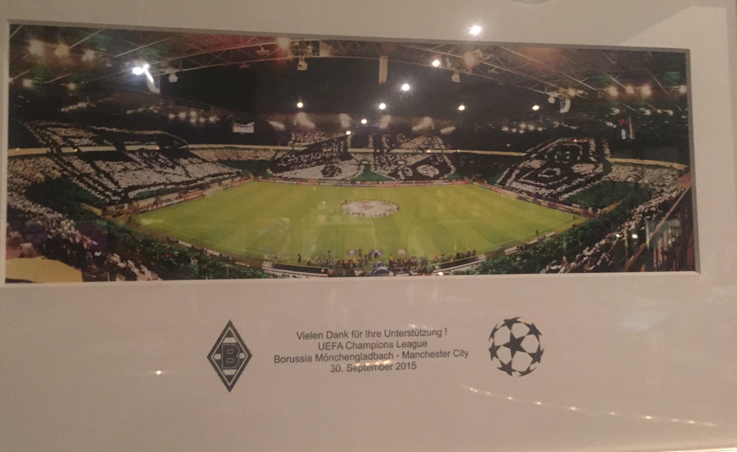 Un po' ovunque campeggiano i colori del Borussia e i suoi simboli, così come pub e locali spesso espongono direttamente la bandiera della squadra tedesca. Ma non solo, perchè nei ristoranti e negli alberghi è facile imbattersi nei ricordi delle ultime partecipazioni in Champions League, con tanto di coreografia come capitato nel 2015 contro il Manchester City (nella foto qui sotto).