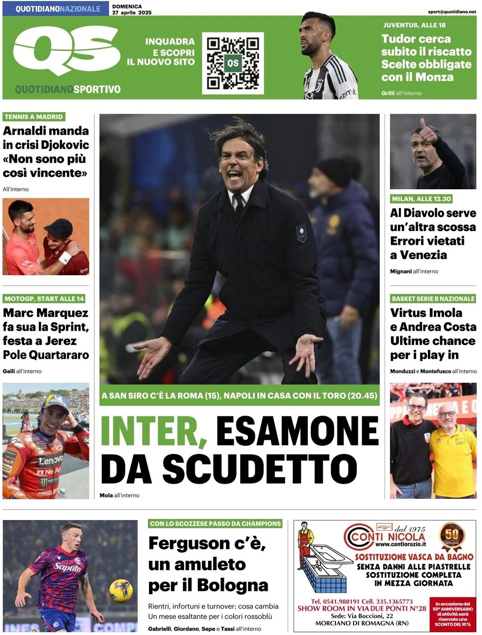 Queste le prime pagine dei maggiori quotidiani sportivi quest'oggi in edicola.