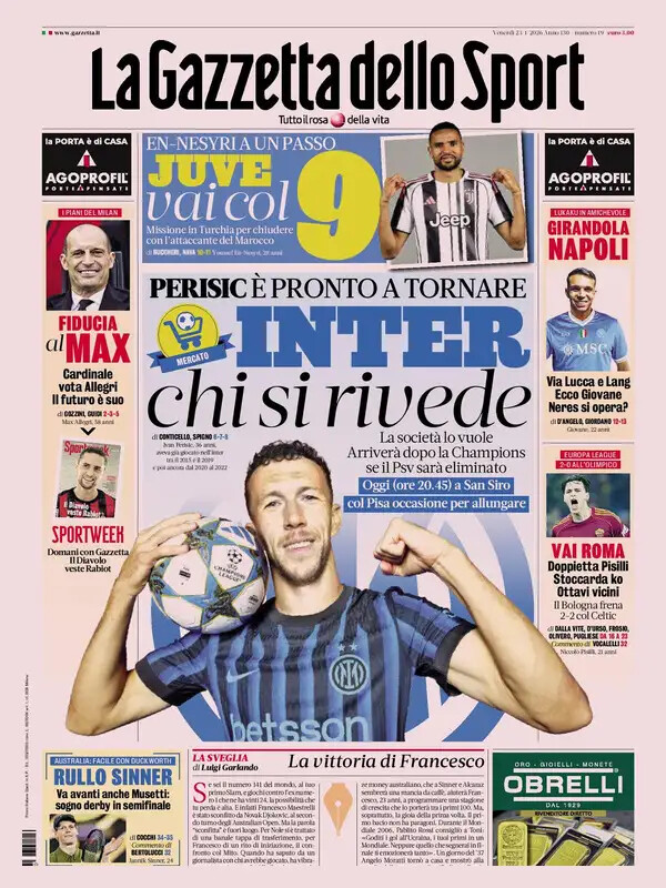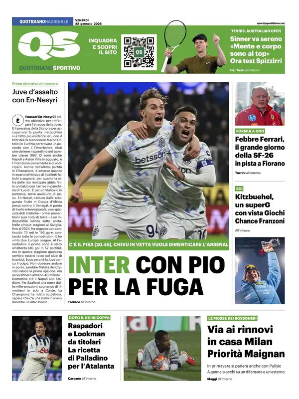 Ecco le prime pagine dei maggiori quotidiani sportivi nazionali in edicola questa mattina.