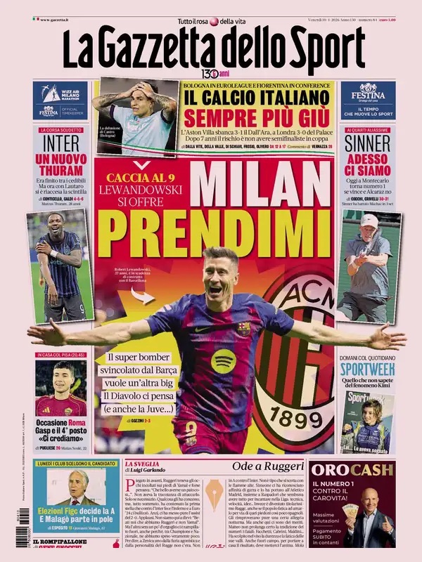 Ecco le prime pagine dei maggiori quotidiani sportivi nazionali in edicola questa mattina.