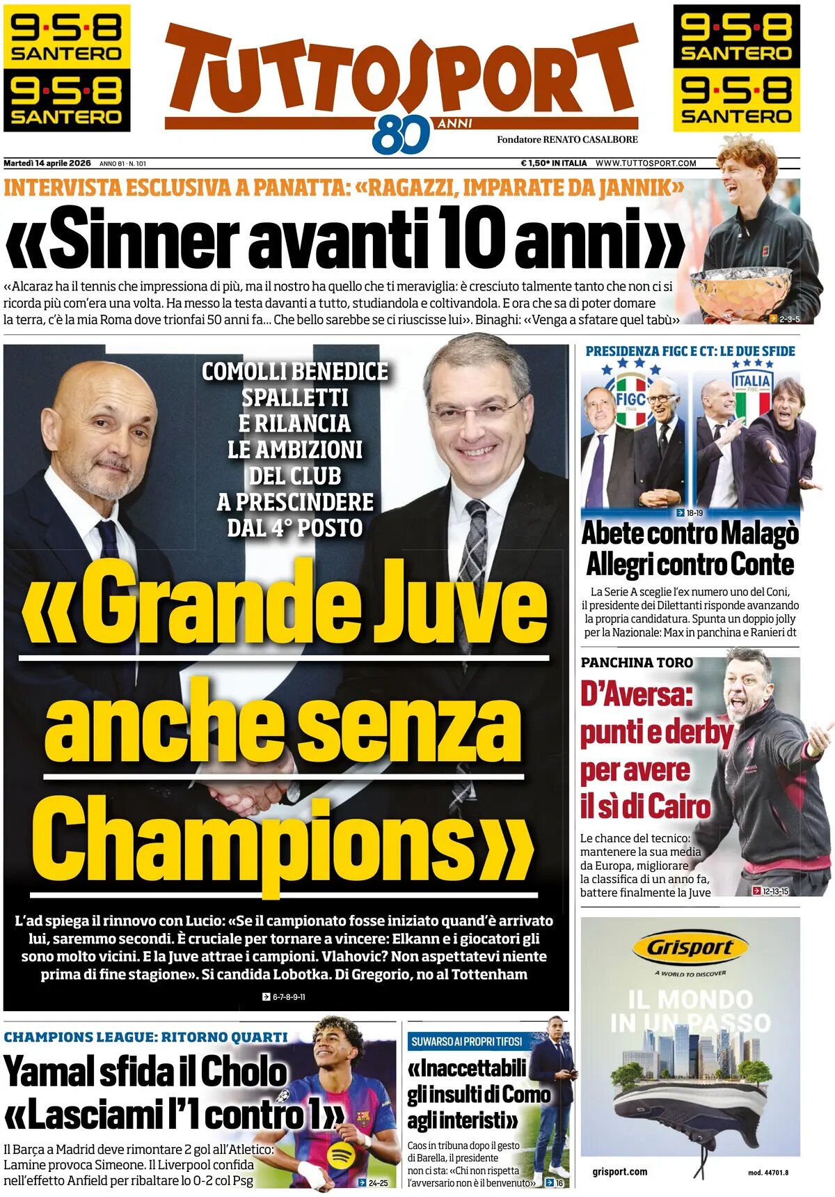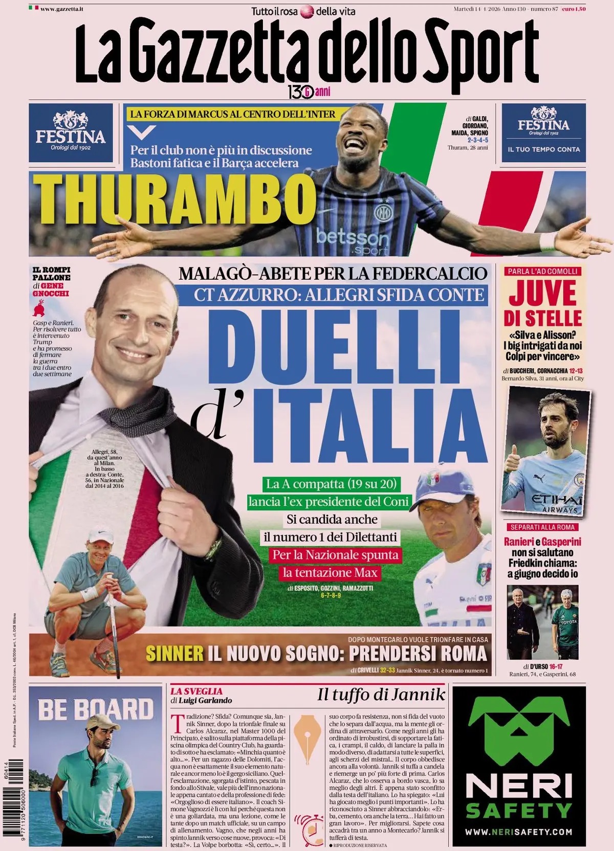 Ecco le prime pagine dei maggiori quotidiani sportivi nazionali in edicola questa mattina.