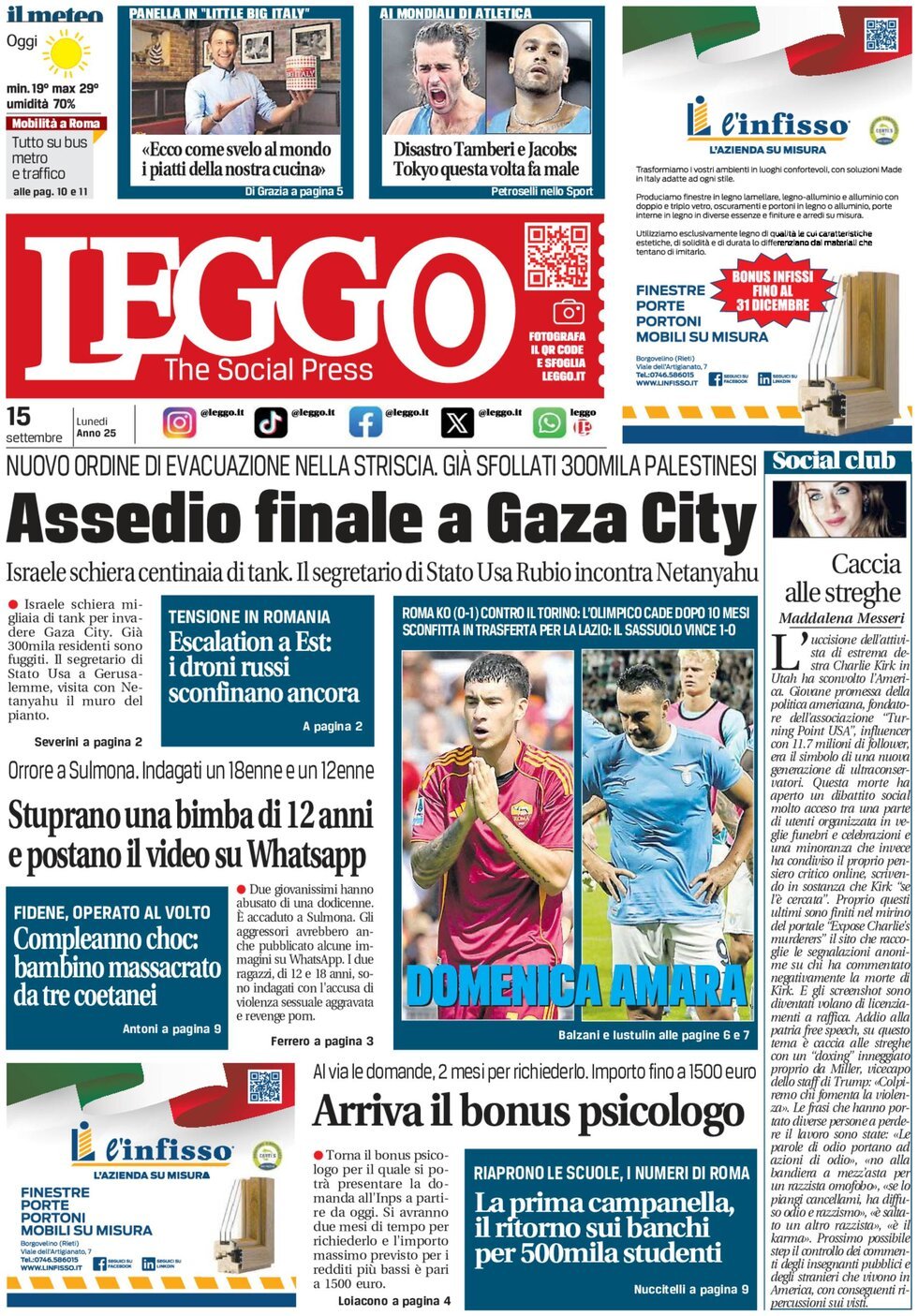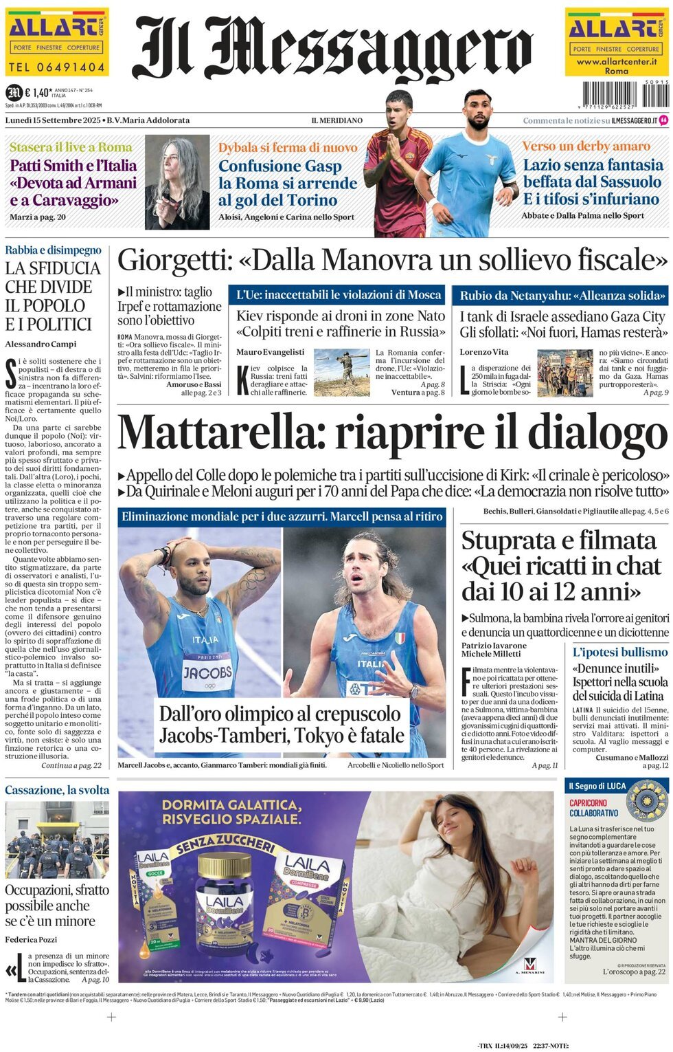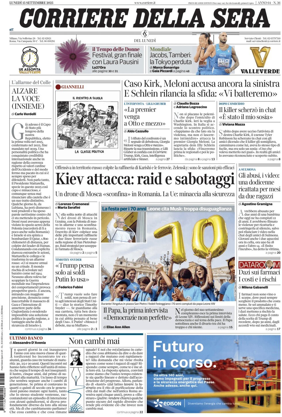 Queste le prime pagine dei quotidiani sportivi in edicola oggi, lunedì 15 settembre 2025.