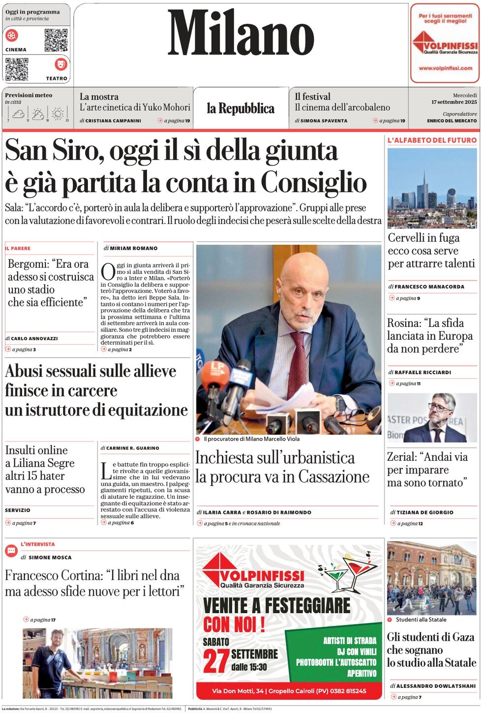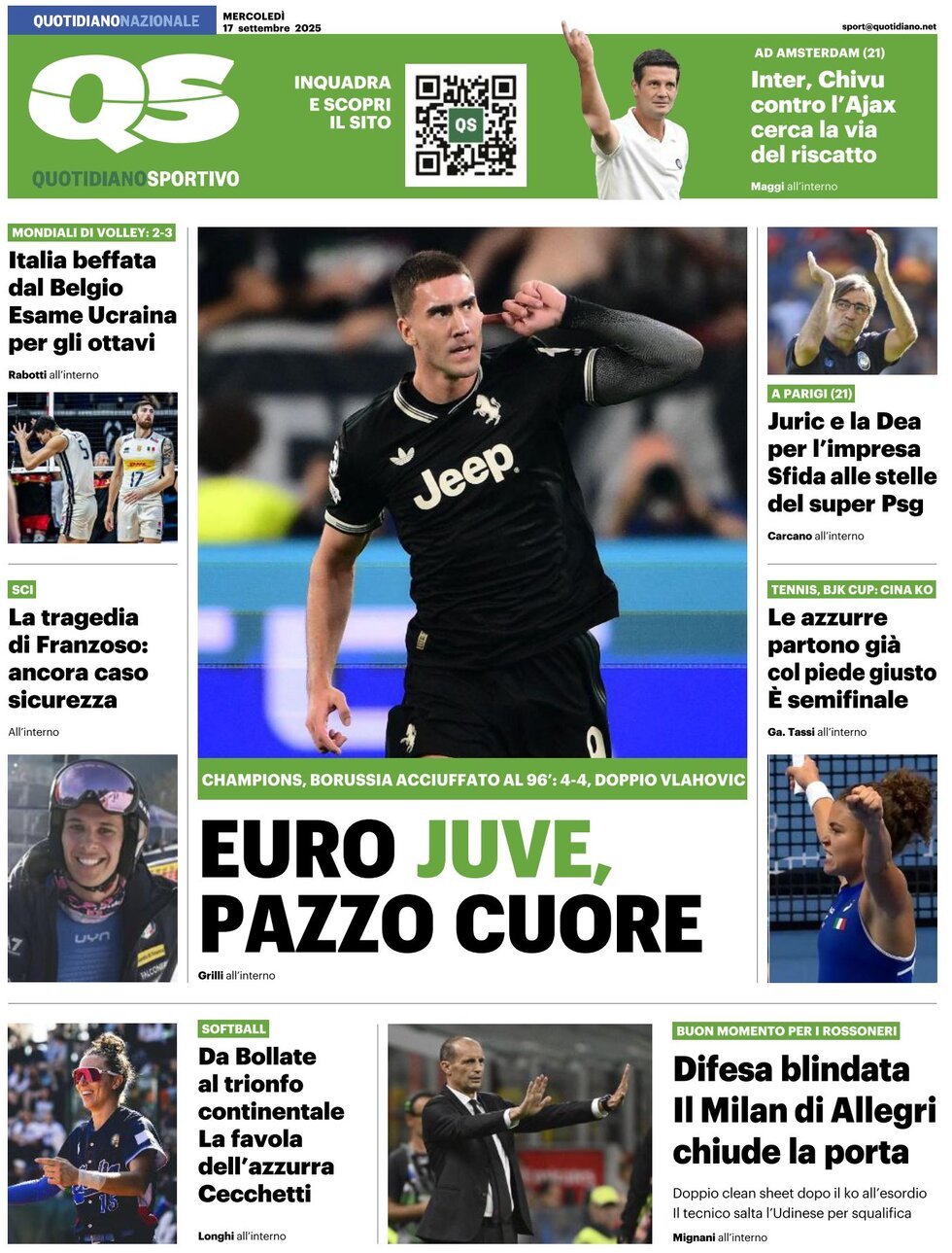 Queste le prime pagine dei quotidiani sportivi in edicola oggi, lunedì 15 settembre 2025.
