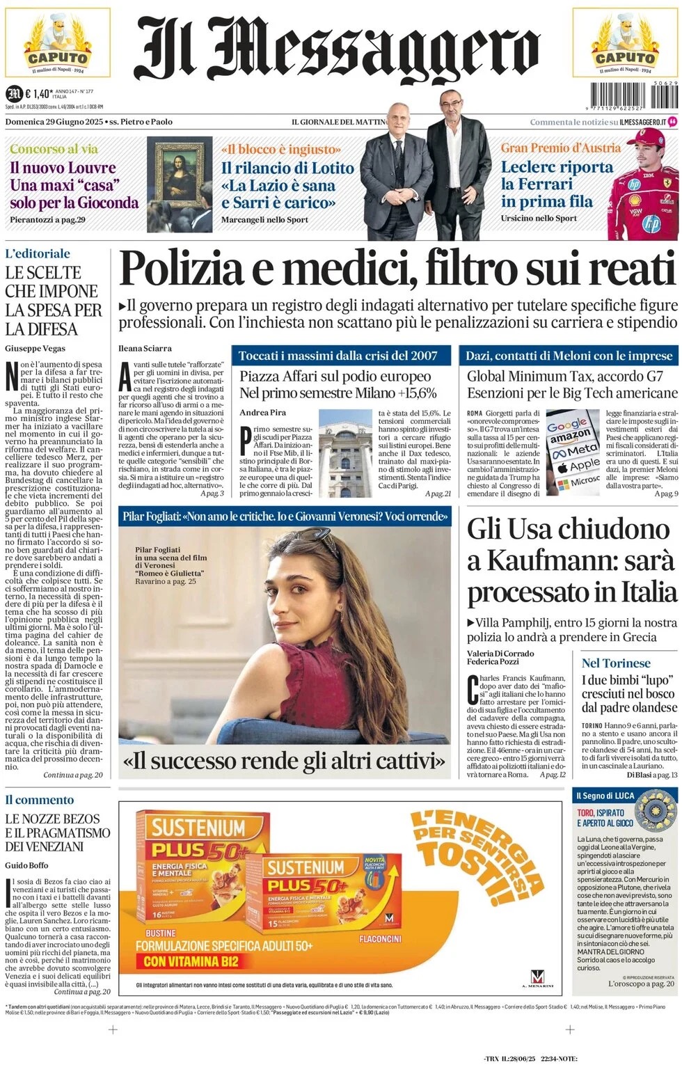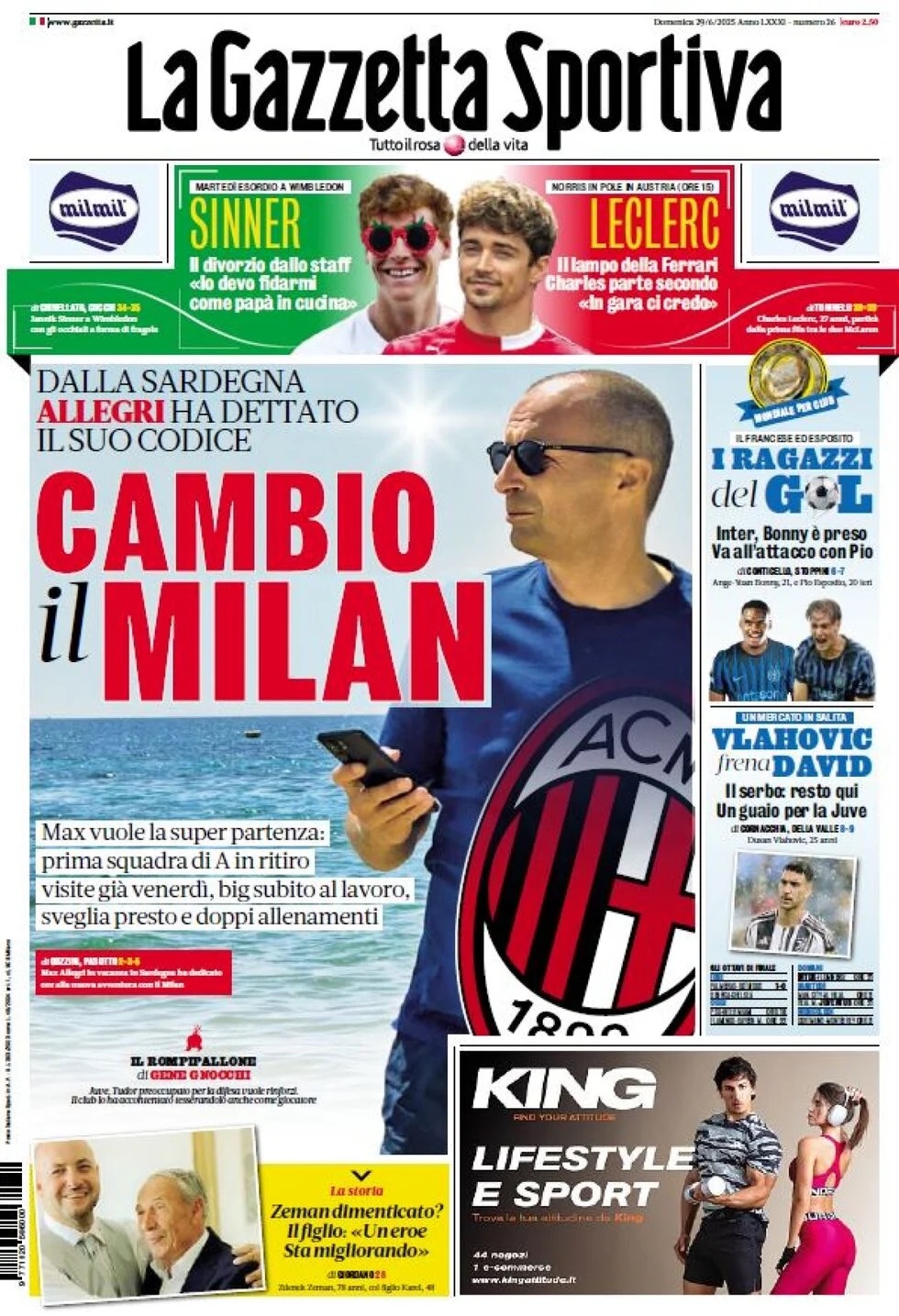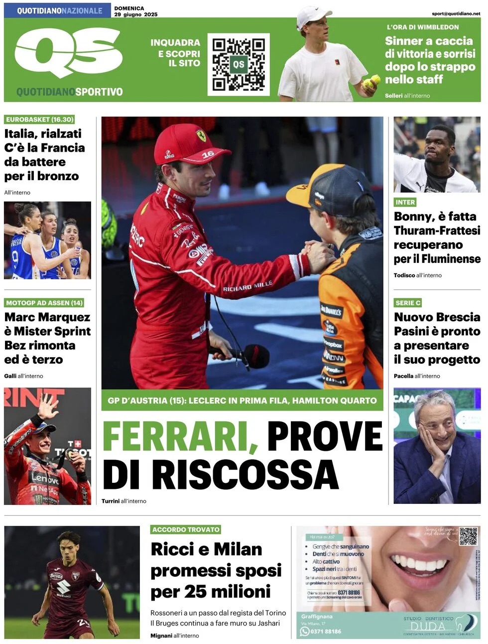 Queste le prime pagine dei quotidiani sportivi in edicola oggi, domenica 29 giugno 2025.