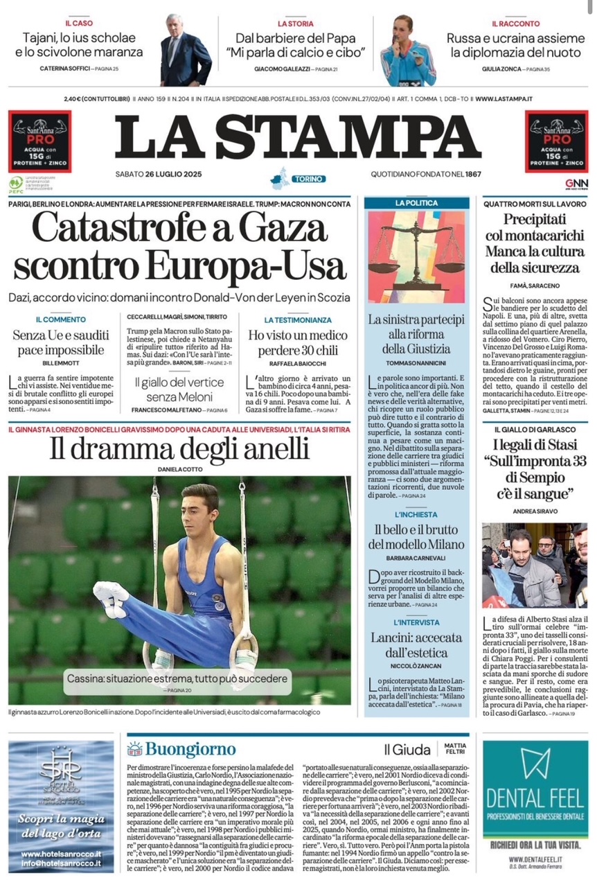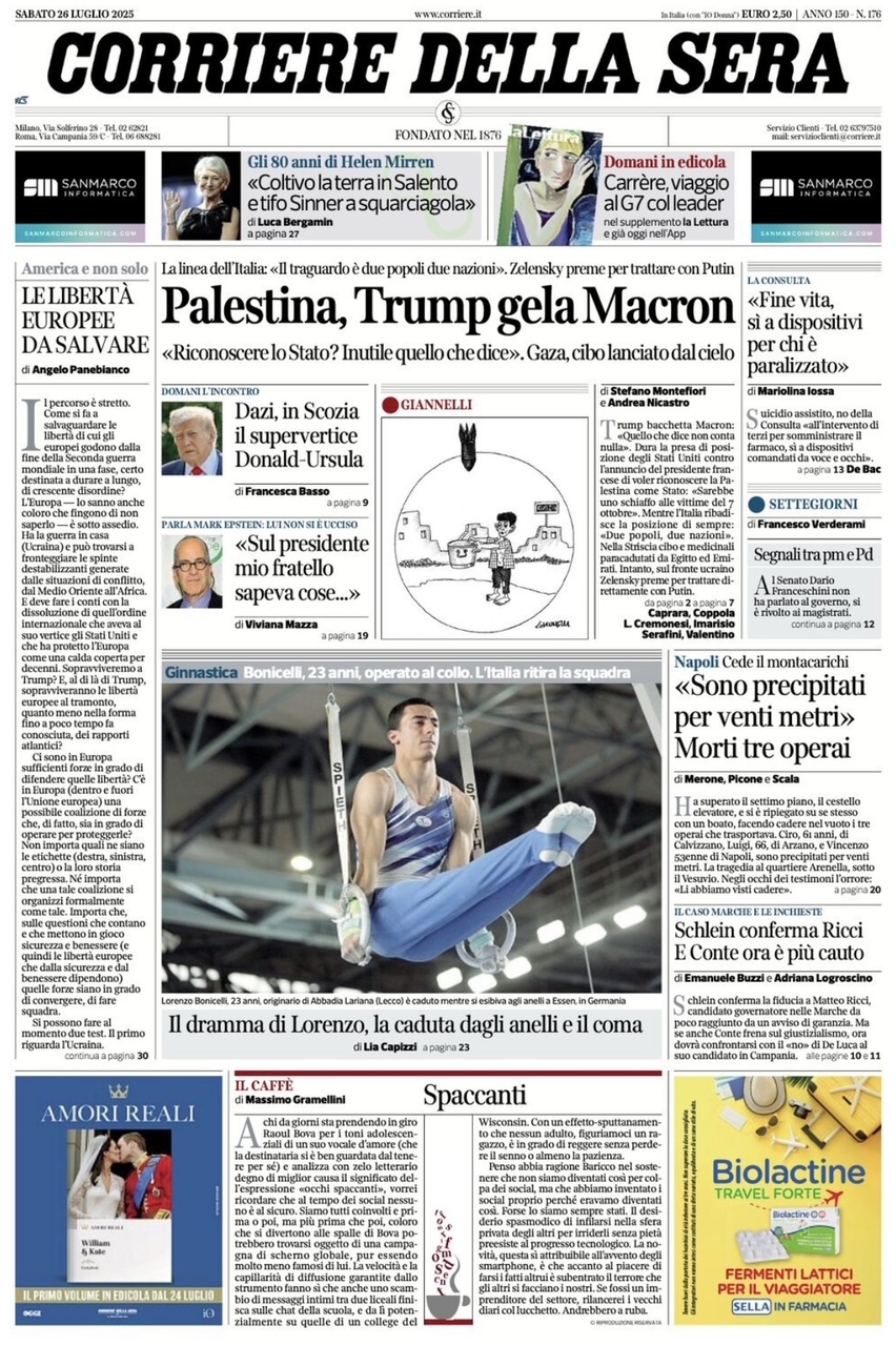 Queste le prime pagine dei quotidiani sportivi di oggi, sabato 26 luglio 2025.