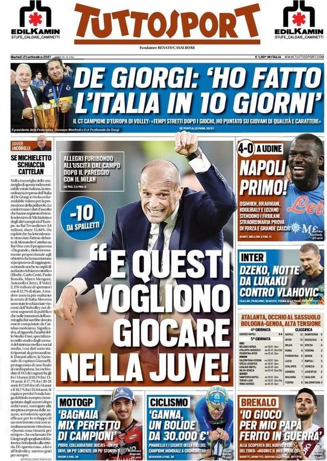 Ecco le prima pagine dei maggiori quotidiani sportivi nazionali, in edicola questa mattina.