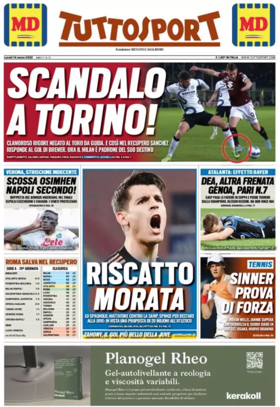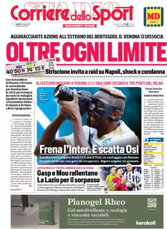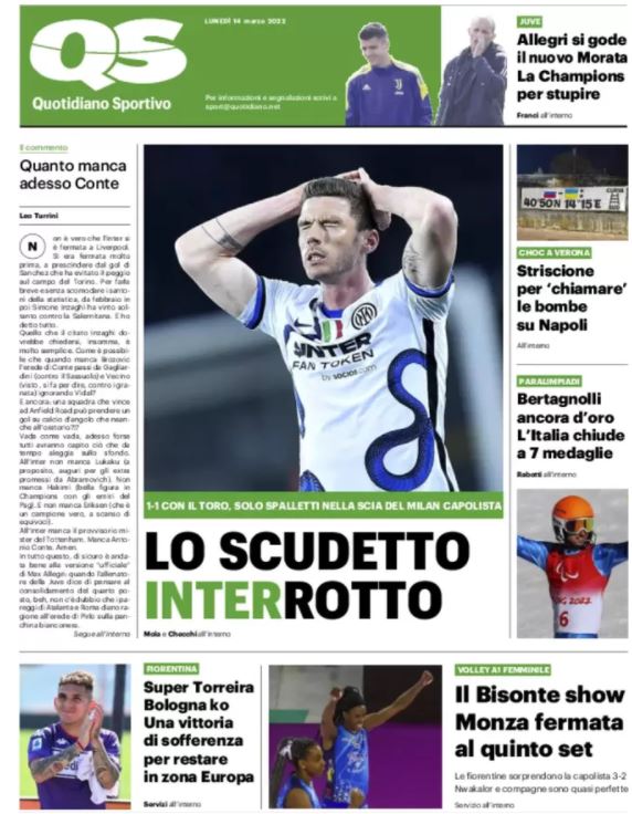 Queste le prime pagine dei maggiori quotidiani sportivi in edicola quest'oggi in Italia.