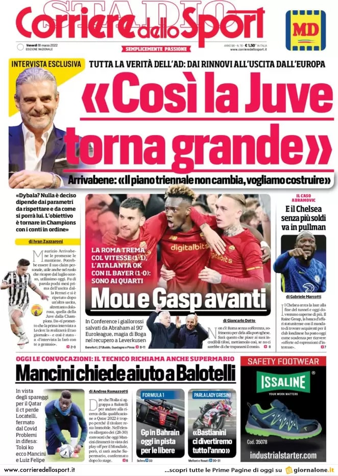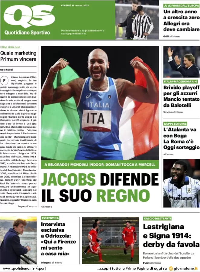 Queste le prime pagine dei maggiori quotidiani sportivi in edicola quest'oggi, venerdì 18 marzo, in Italia.