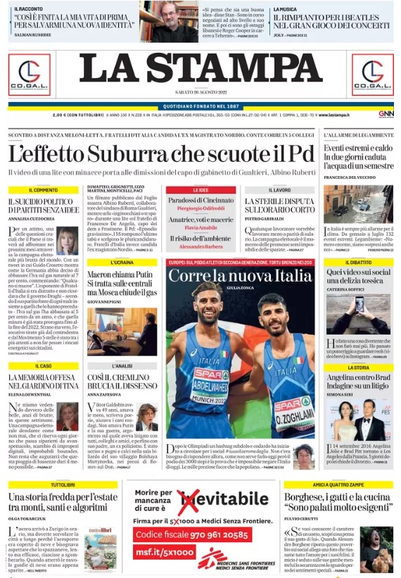 RASSEGNA STAMPA, Le prime pagine dei giornali