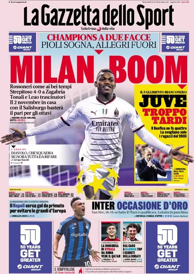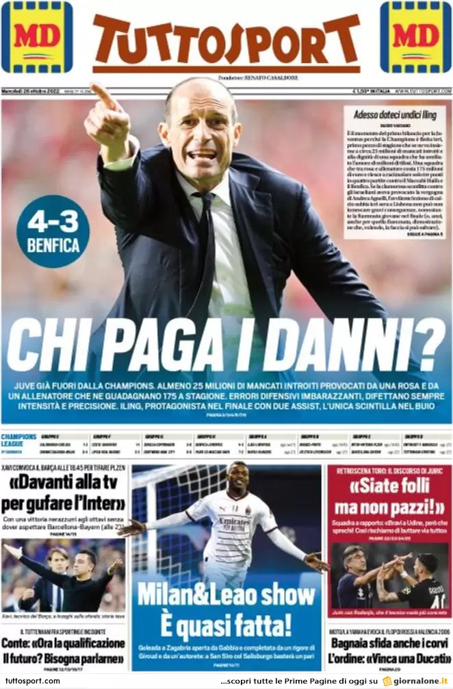 Ecco le prime pagine dei maggiori quotidiani sportivi nazionali, in edicola questa mattina.