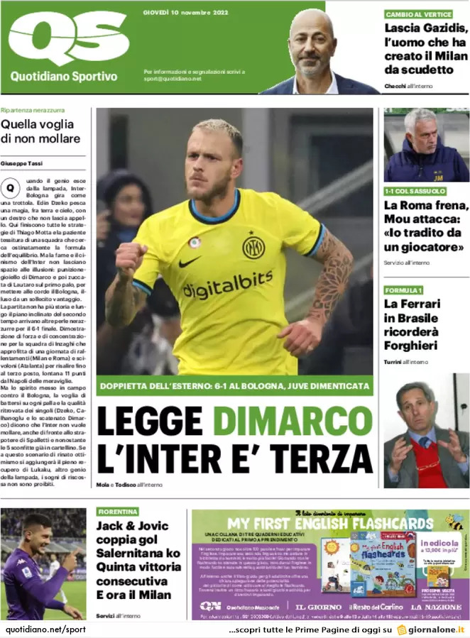Ecco le prime pagine dei maggiori quotidiani sportivi nazionali, in edicola questa mattina.