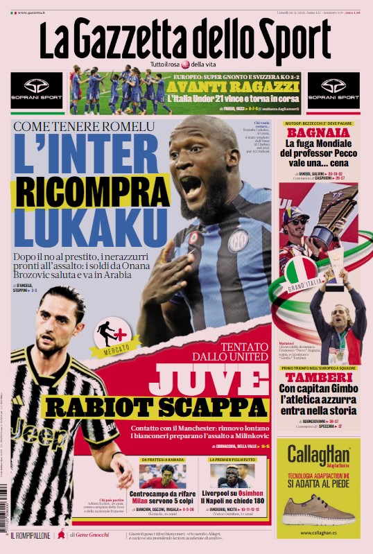 Ecco le prime pagine dei maggiori giornali sportivi nazionali, in edicola questa mattina.