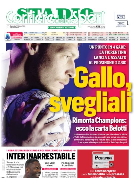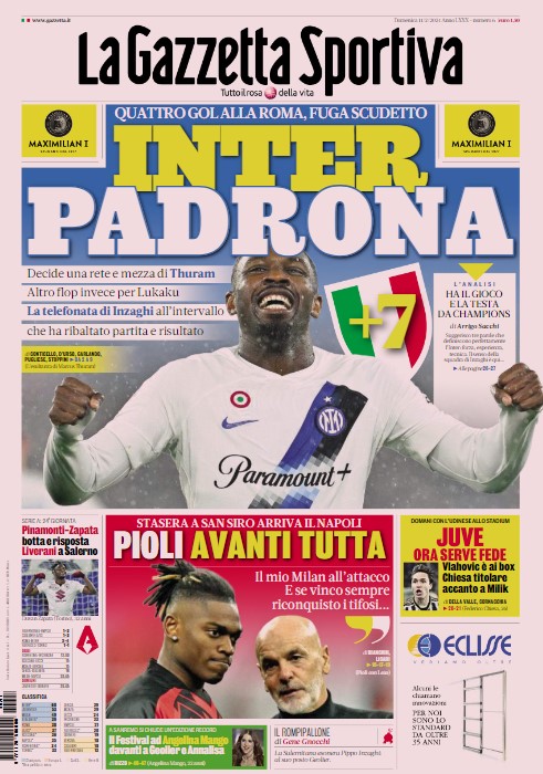 Queste le prime pagine dei maggiori quotidiani sportivi in edicola quest'oggi in Italia.