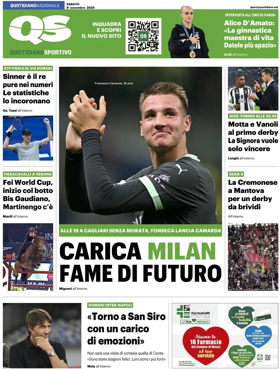 Queste le prime pagine dei maggiori quotidiani sportivi in edicola quest'oggi, sabato 9 novembre, in Italia.