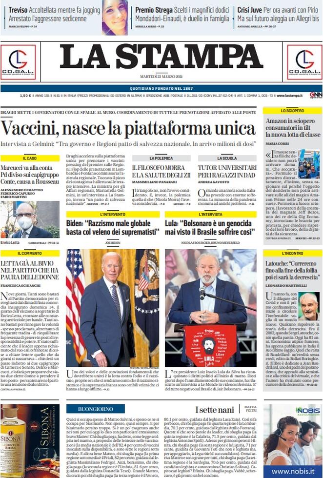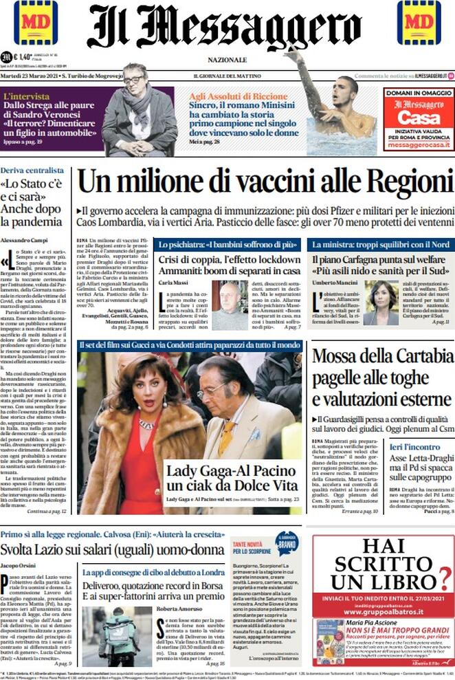 RASSEGNA STAMPA, Le prime pagine dei quotidiani