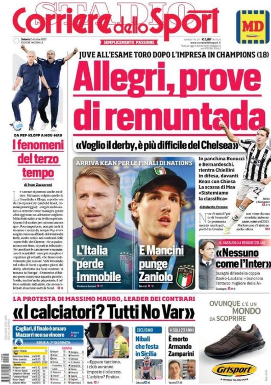 Ecco le prime pagine dei maggiori quotidiani sportivi nazionali, in edicola questa mattina.