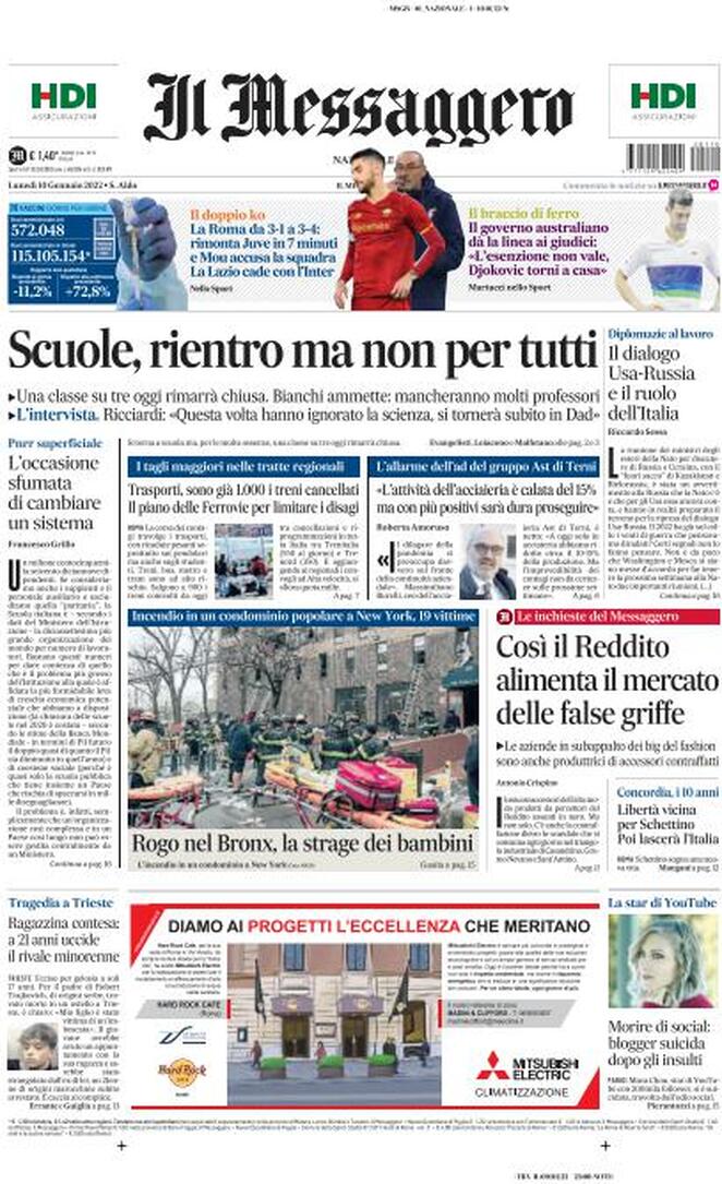 RASSEGNA STAMPA, Le prime pagine dei quotidiani