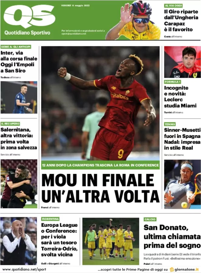 Ecco le prime pagine dei maggiori quotidiani sportivi nazionali, in edicola oggi, 4 maggio 2022.