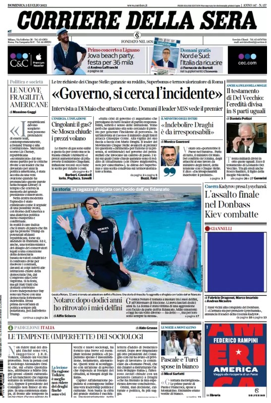 RASSEGNA STAMPA, Le prime pagine dei quotidiani