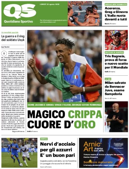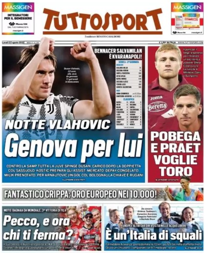 Queste le prime pagine dei giornali sportivi italiani in edicola nella giornata di oggi, lunedì 22 agosto 2022.