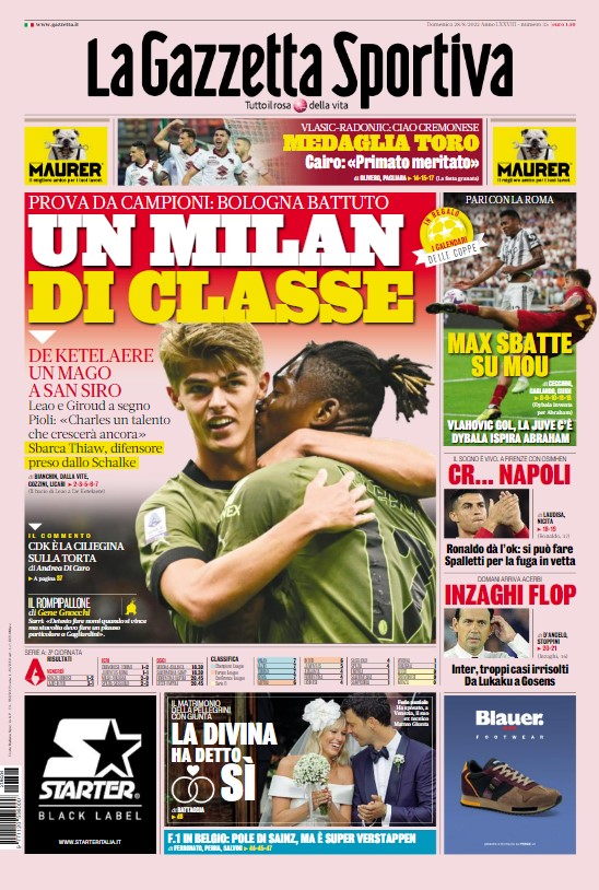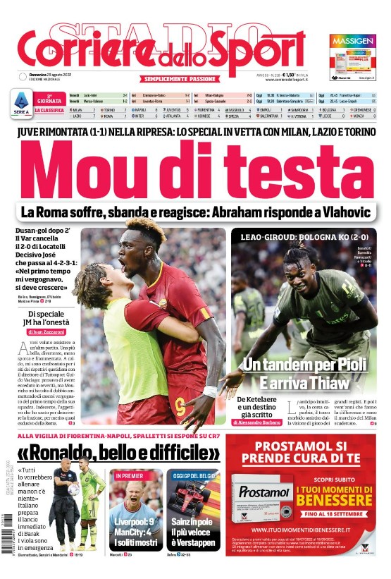 Queste le prime pagine dei maggiori quotidiani sportivi in edicola quest'oggi in Italia, domenica 28 agosto 2022.