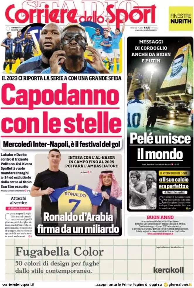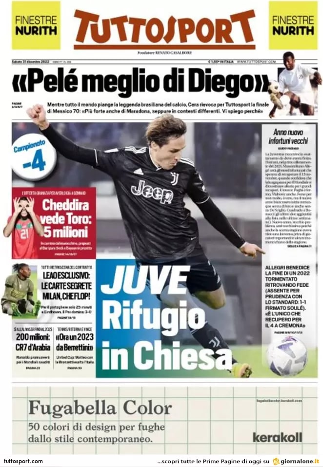 Ecco le prime pagine dei maggiori quotidiani sportivi nazionali, in edicola oggi, sabato 31 dicembre.