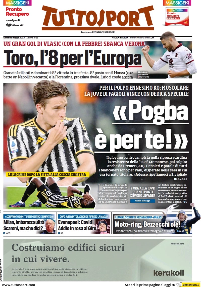 Ecco le prime pagine dei maggiori quotidiani sportivi nazionali, in edicola questa mattina.