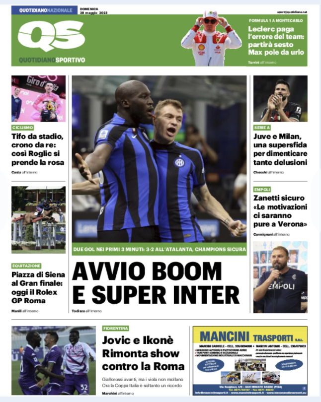 Ecco le prime pagine dei quotidiani in edicola oggi, domenica 28 maggio 2023.