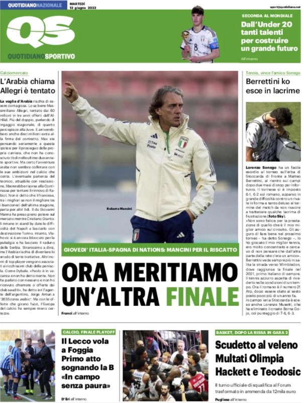 Ecco le prime pagine dei maggiori quotidiani sportivi nazionali, in edicola questa mattina.