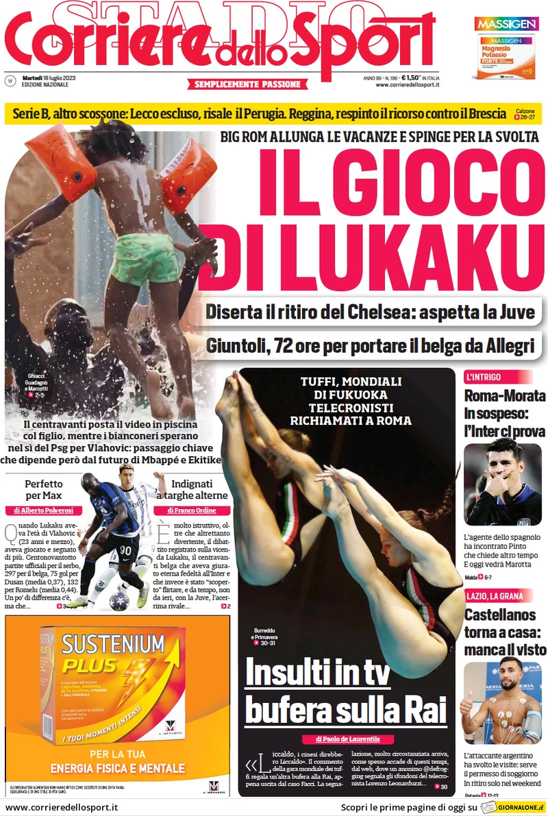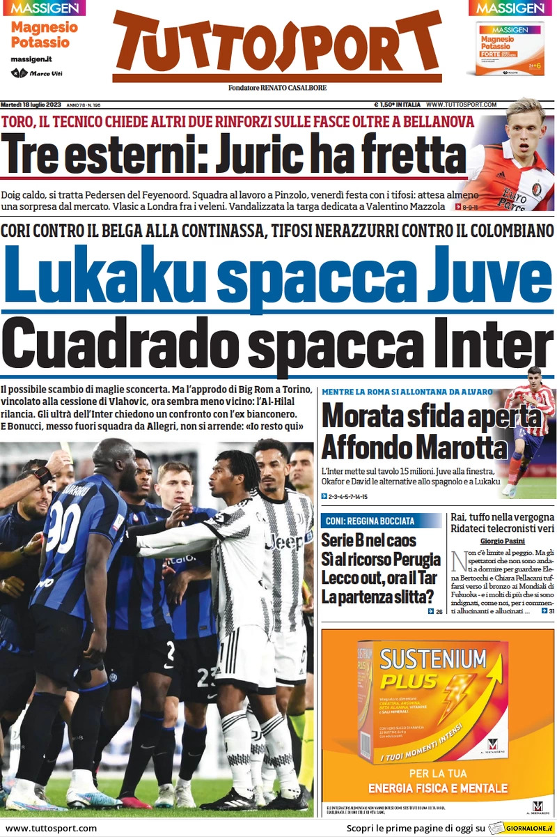 Queste le prime pagine dei maggiori quotidiani sportivi in edicola quest'oggi in Italia, martedì 18 luglio 2023.