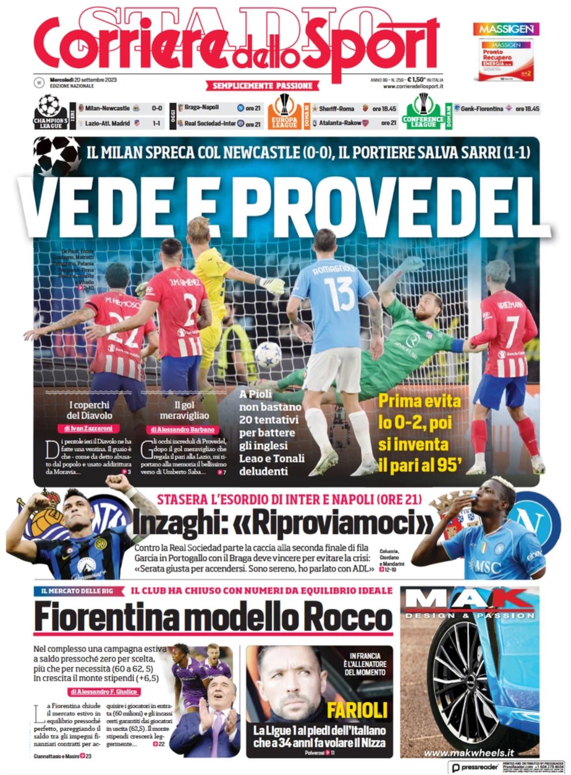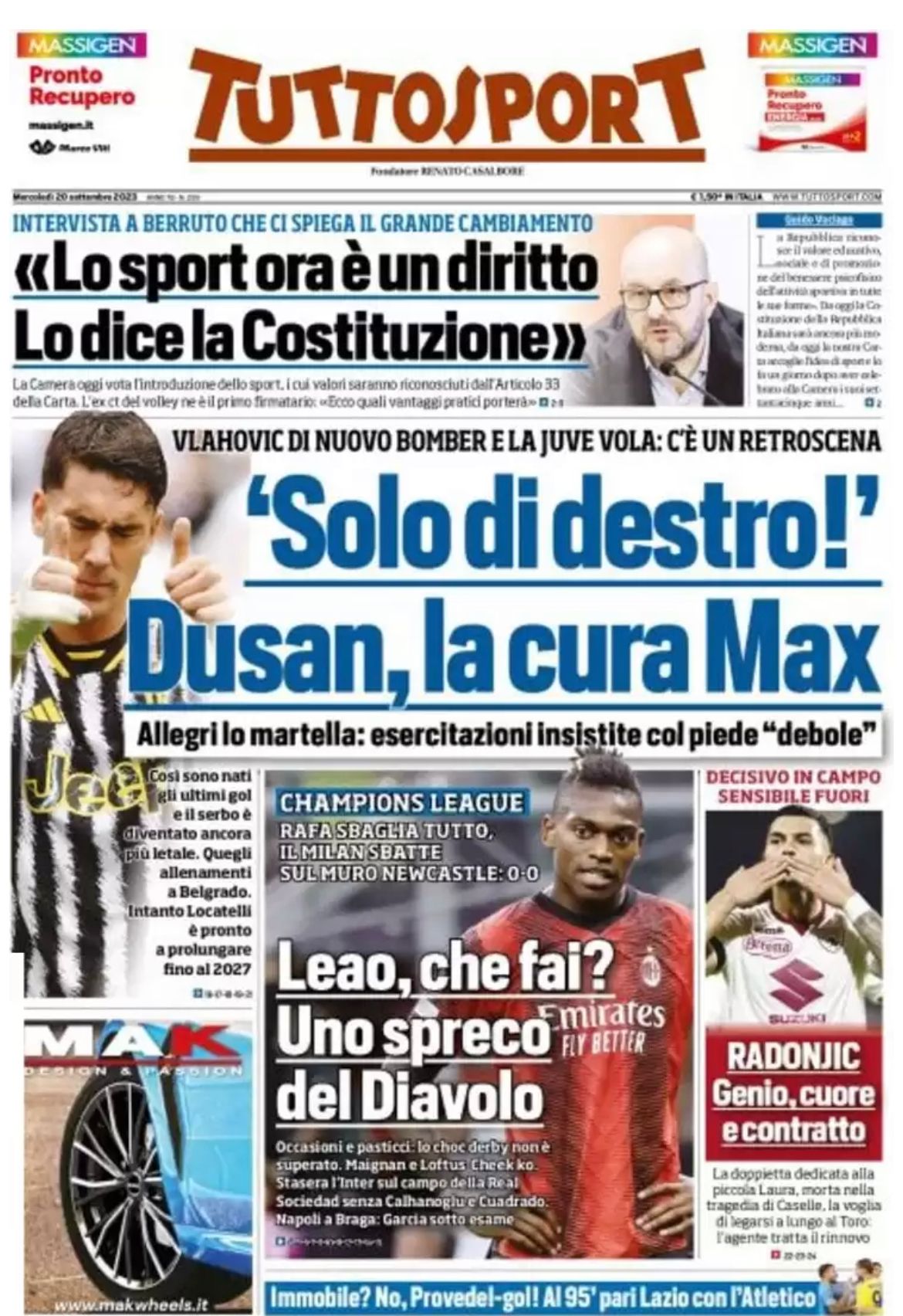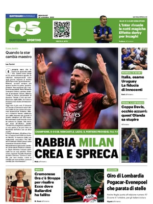 Queste le prime pagine dei principali quotidiani sportivi d'Italia, oggi in edicola.
