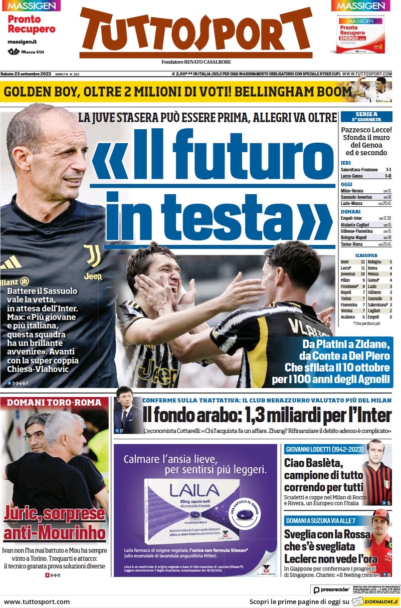 Queste le prime pagine dei maggiori quotidiani sportivi in edicola quest'oggi.