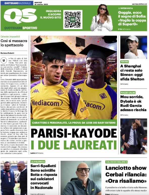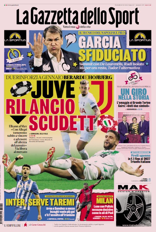 Queste le prime pagine dei quotidiani sportivi e locali in edicola oggi, martedì 10 ottobre 2023.