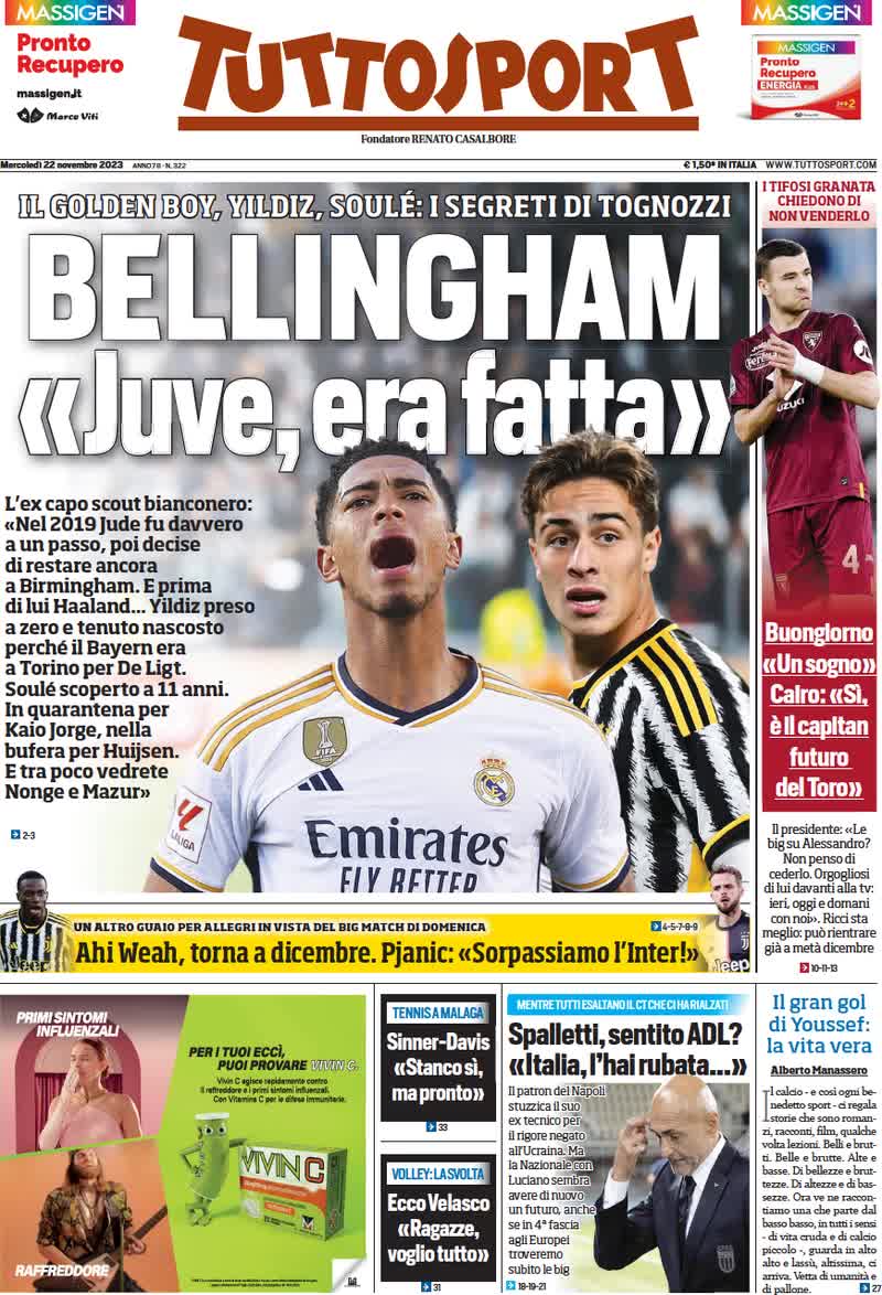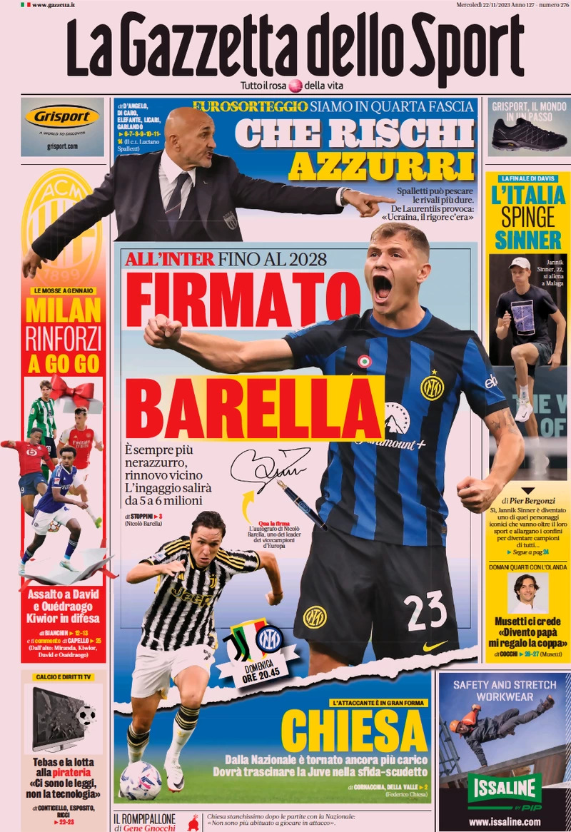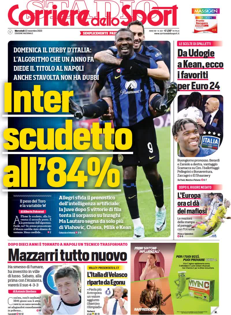 Queste le prime pagine dei quotidiani sportivi nazionali e locali in edicola oggi, martedì 21 novembre 2023.