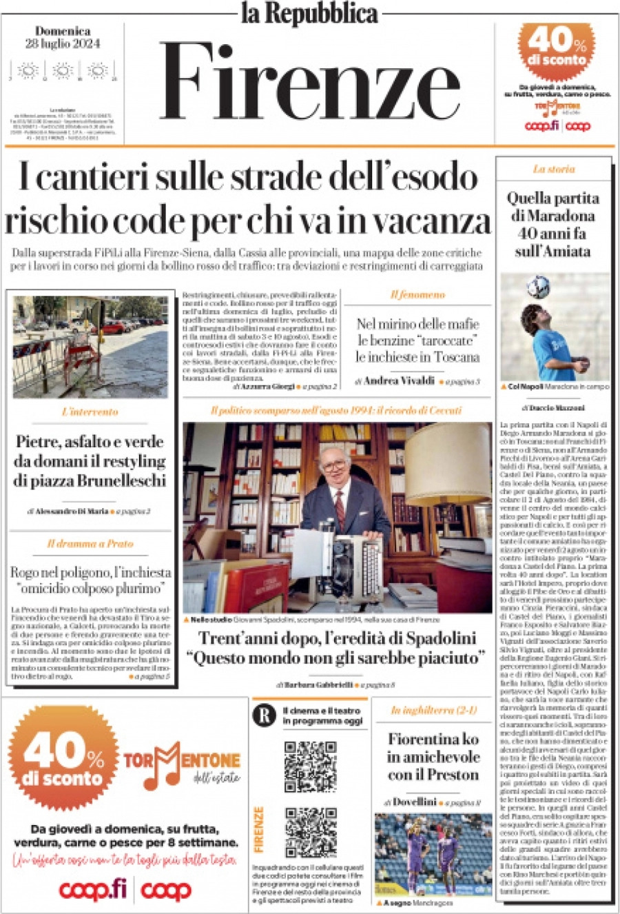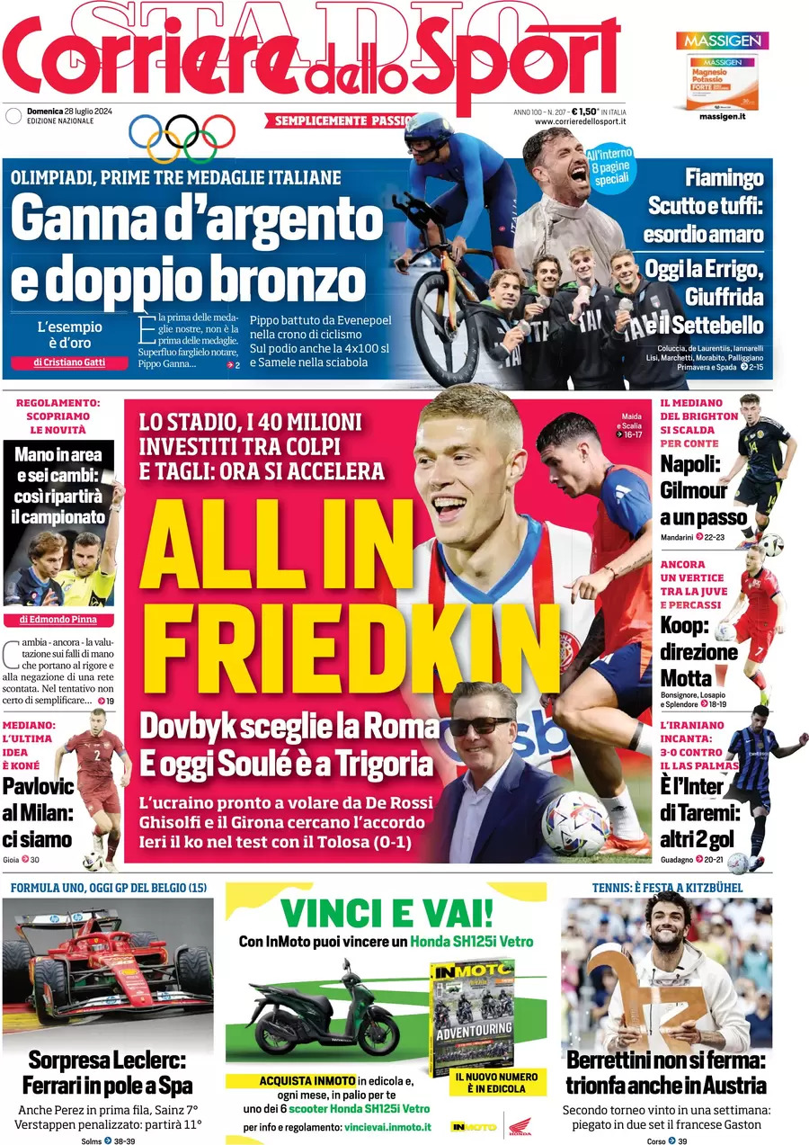 Queste le prime pagine dei maggiori quotidiani sportivi e locali in edicola quest'oggi, domenica 28 luglio, in Italia.