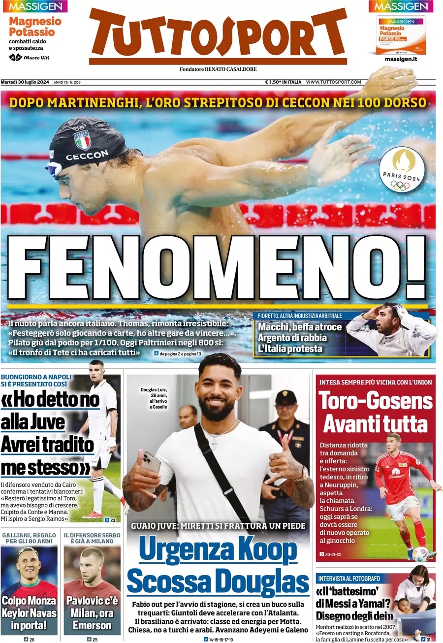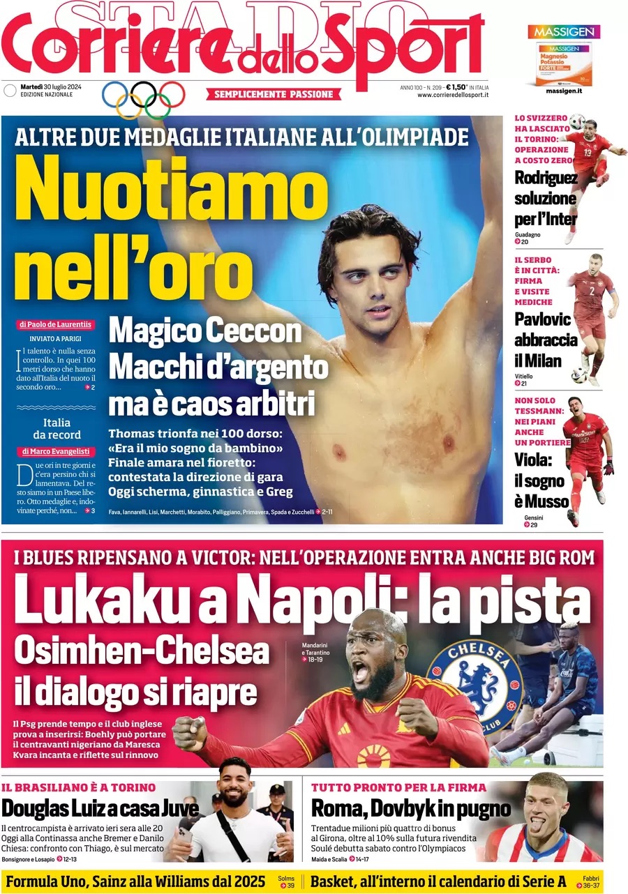 Queste le prime pagine dei maggiori quotidiani sportivi e locali in edicola quest'oggi, lunedì 29 luglio, in Italia.