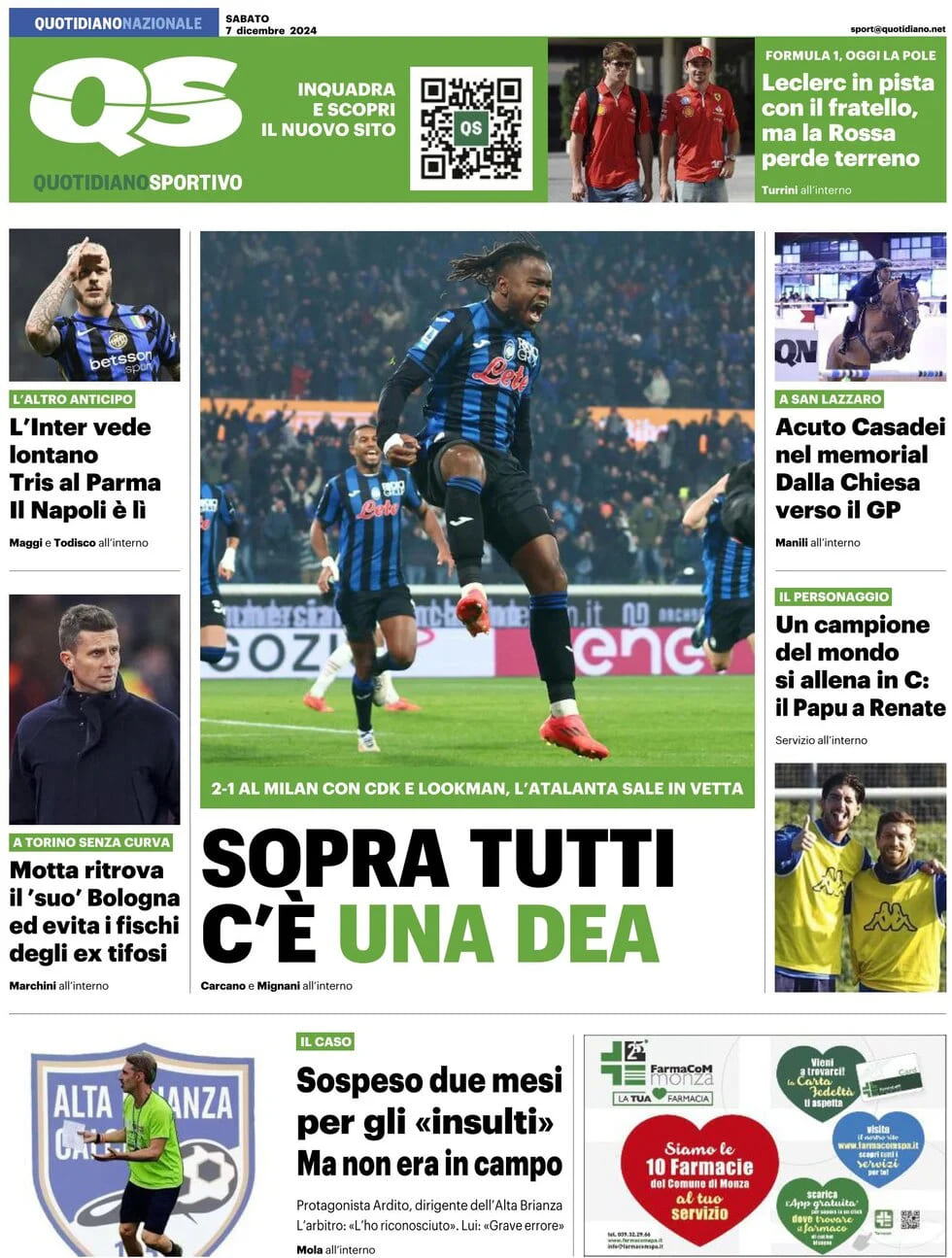 Queste le prime pagine dei principali quotidiani sportivi in edicola oggi, sabato 7 dicembre 2024.