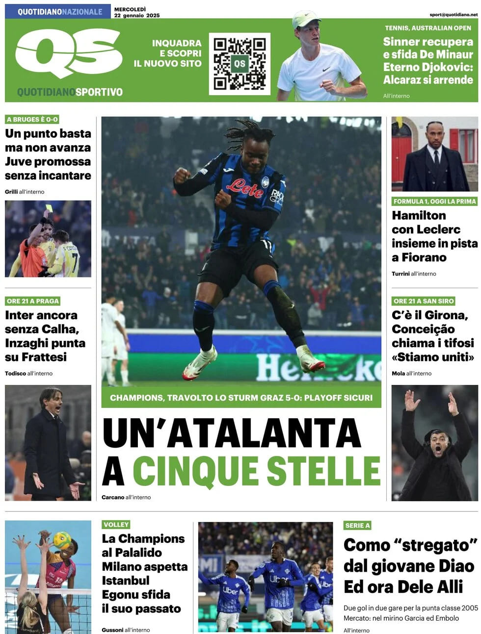 Queste le prime pagine dei principali quotidiani sportivi nazionali in edicola oggi, mercoledì 22 gennaio 2025.
