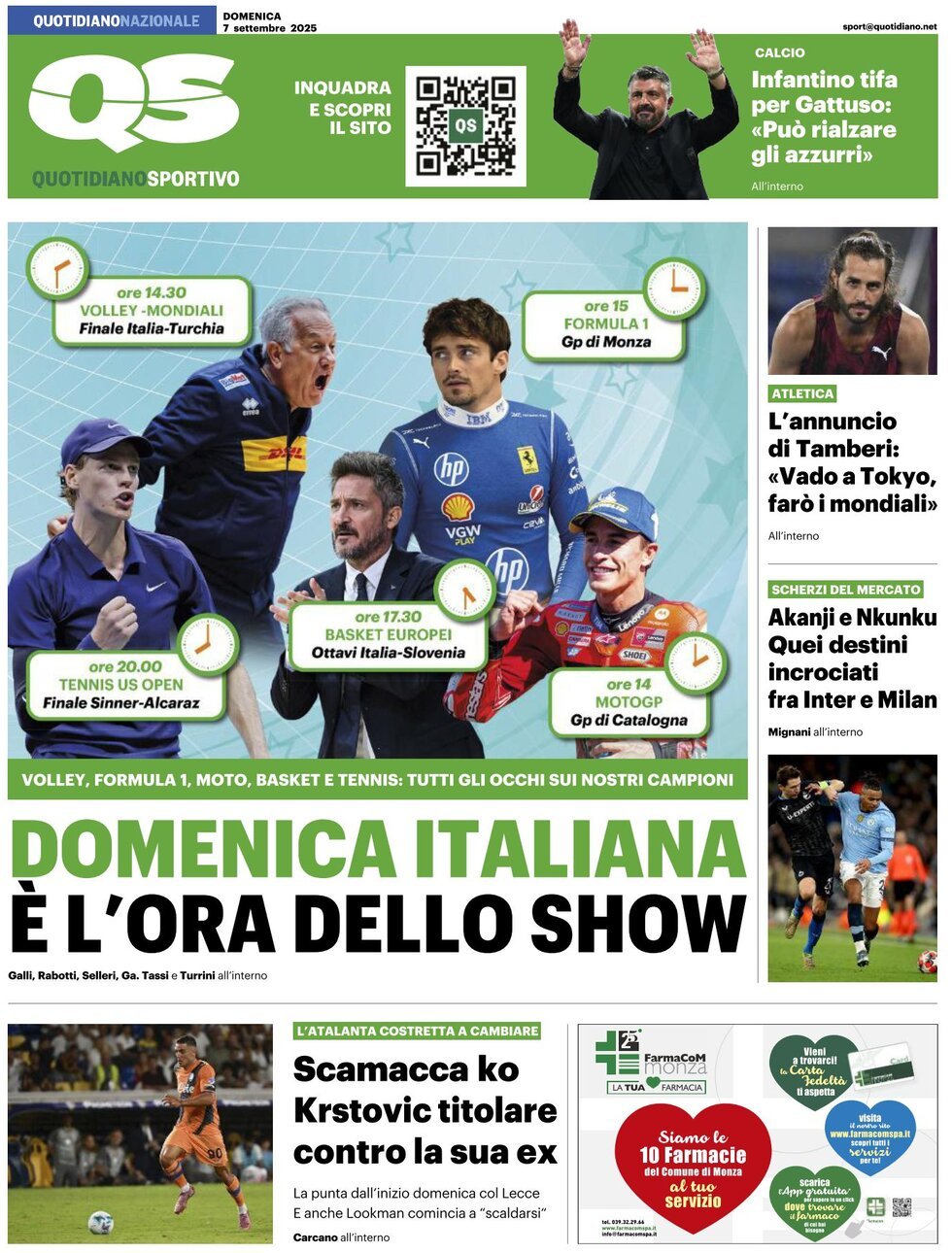 Queste le prime pagine dei quotidiani sportivi in edicola oggi, domenica 7 settembre 2025.