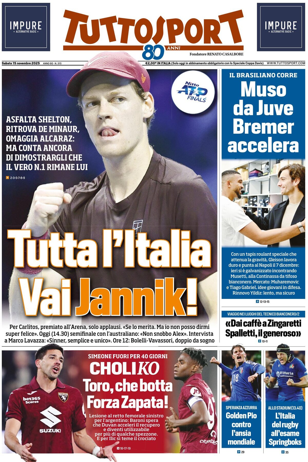 Queste le prime pagine dei quotidiani sportivi in edicola oggi, sabato 15 novembre 2025.