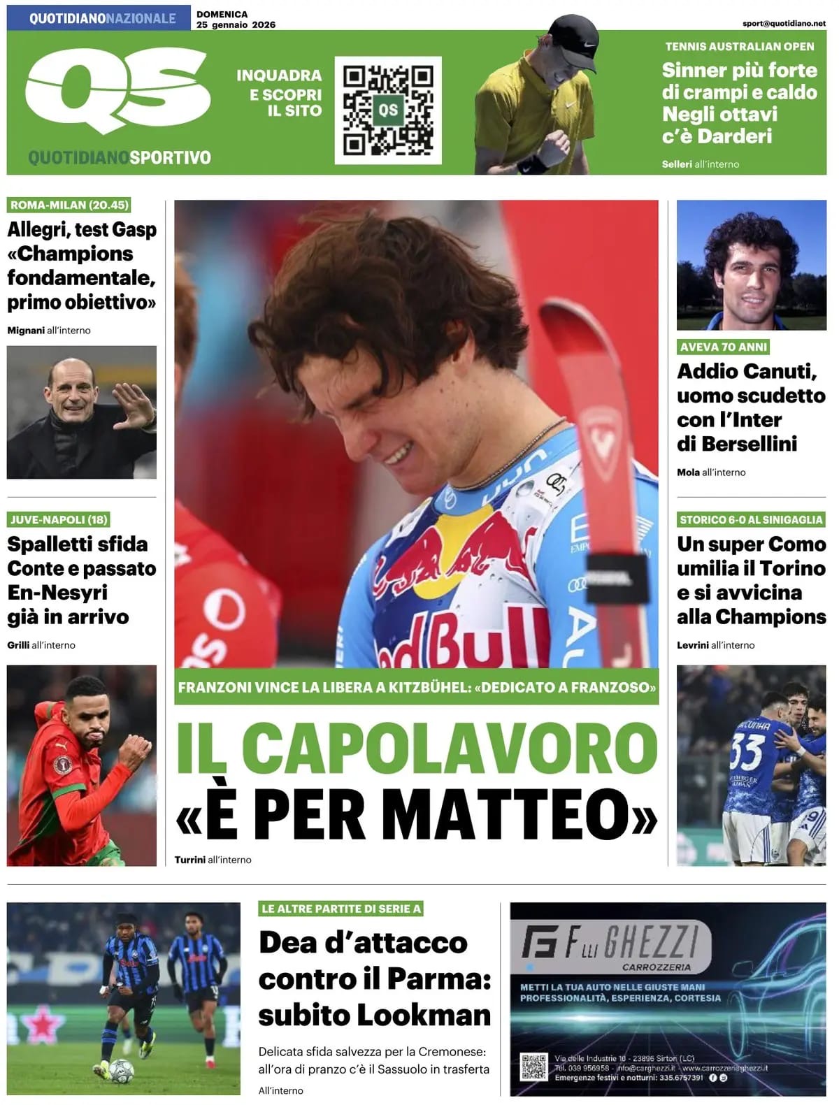 Queste le prime pagine dei quotidiani sportivi di oggi, domenica 25 gennaio 2026.