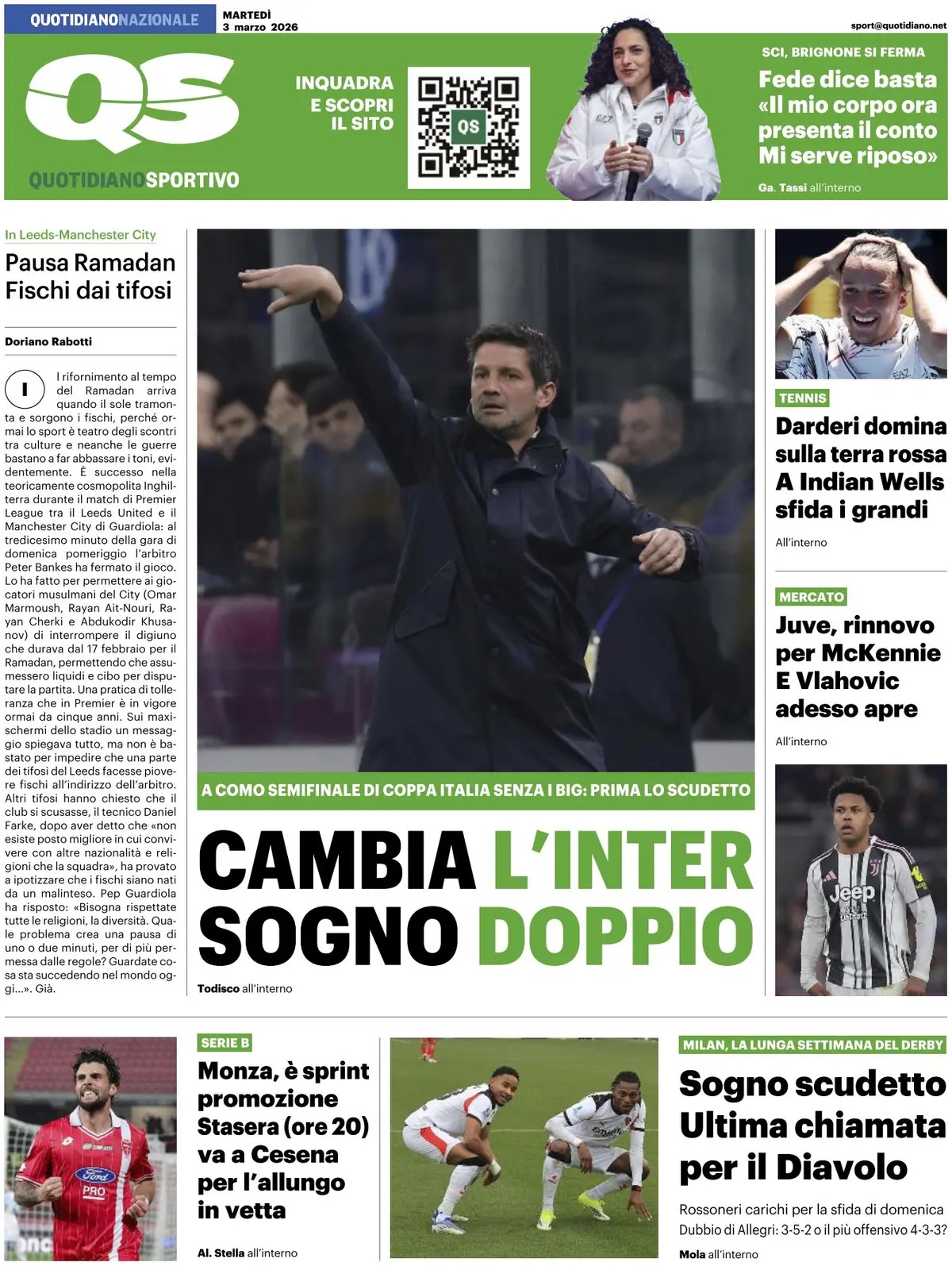 Queste le prime pagine dei quotidiani sportivi in edicola oggi, martedì 3 marzo 2025.