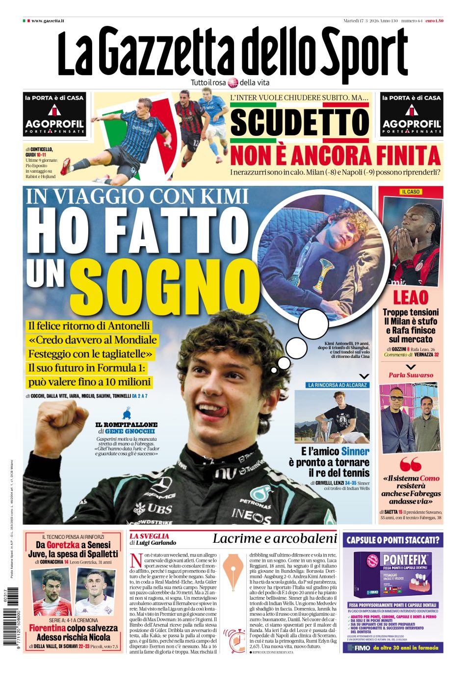 Queste le prime pagine dei quotidiani sportivi in edicola oggi, martedì 17 marzo 2026.