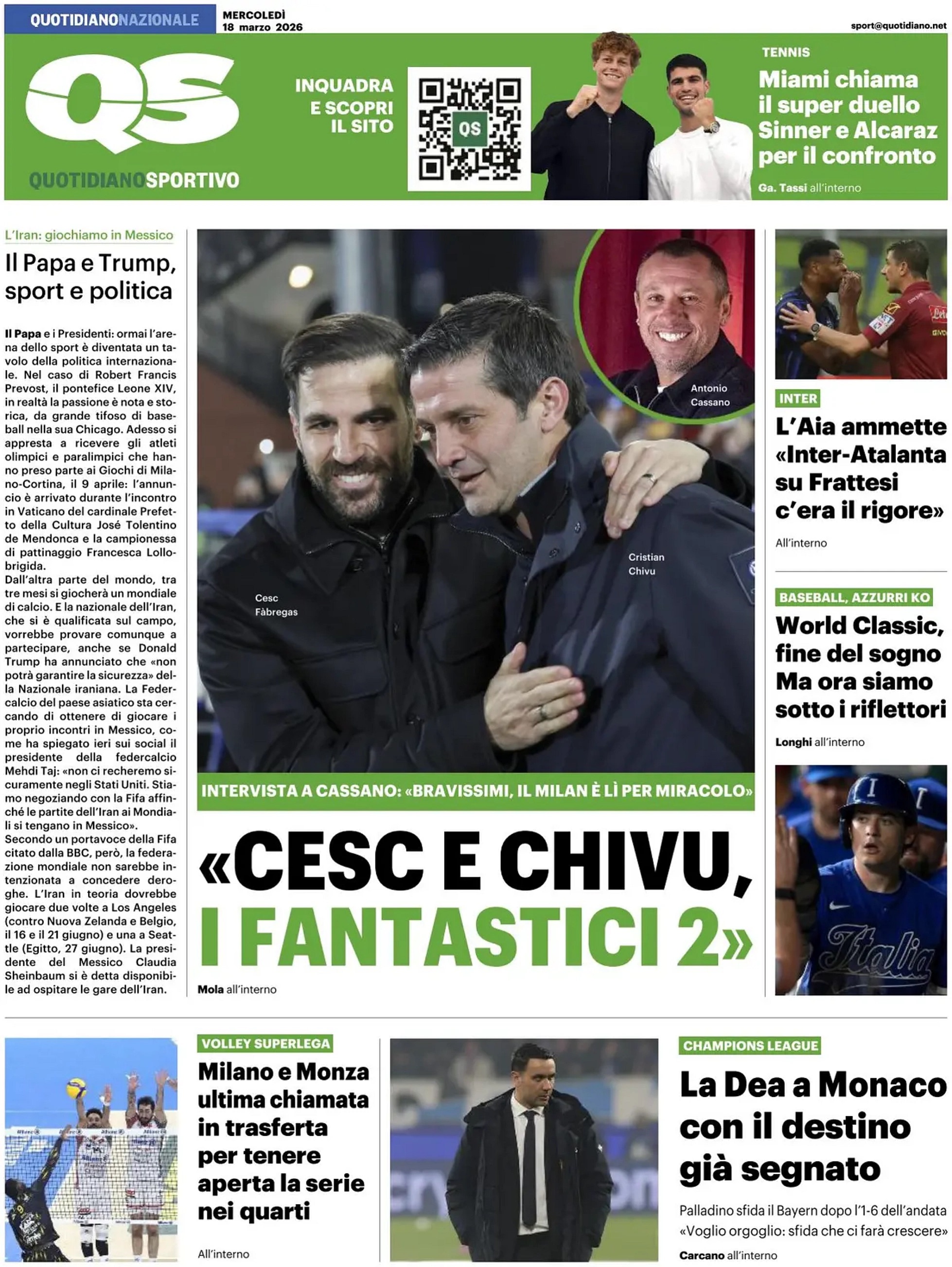 Queste le prime pagine dei quotidiani sportivi in edicola oggi, martedì 17 marzo 2026.